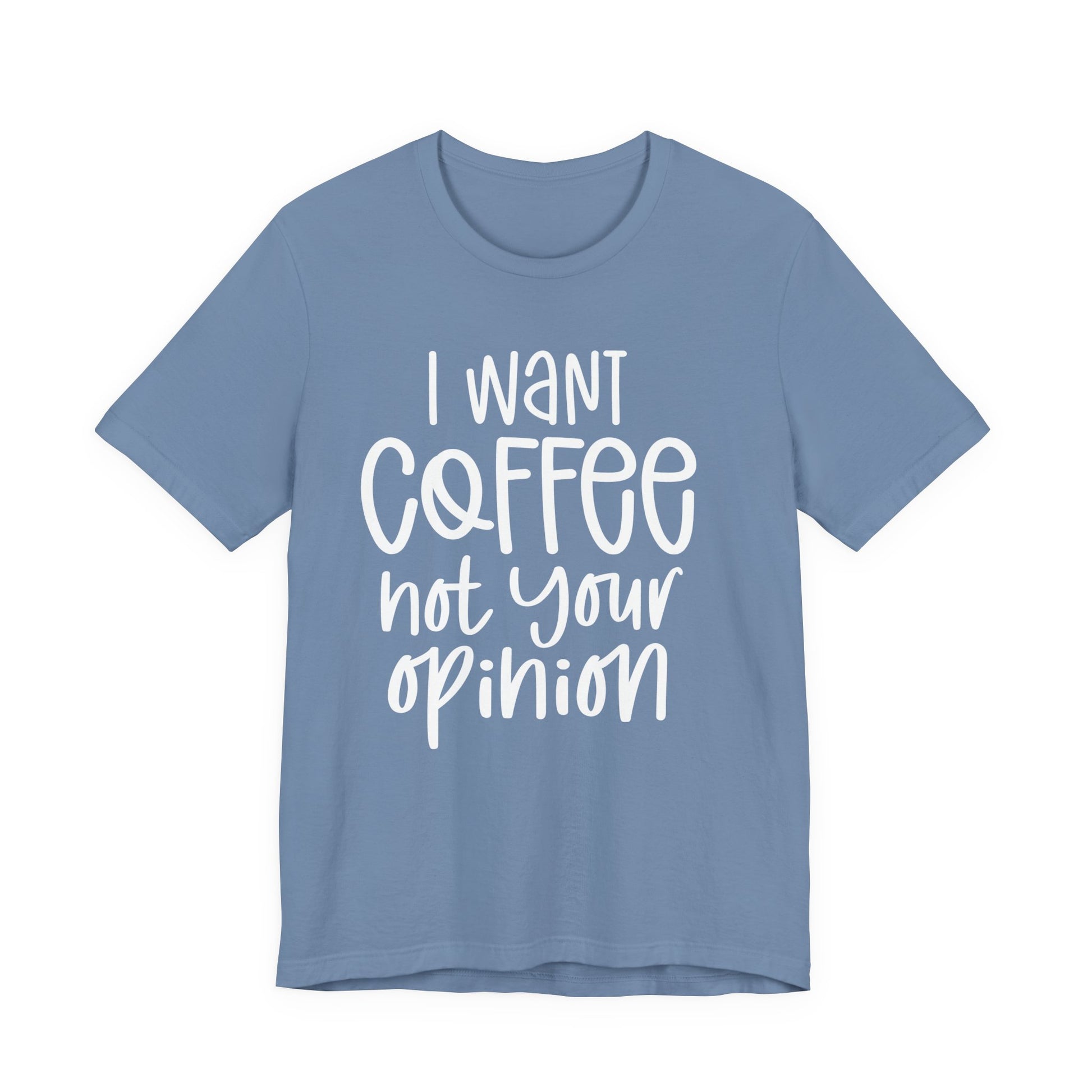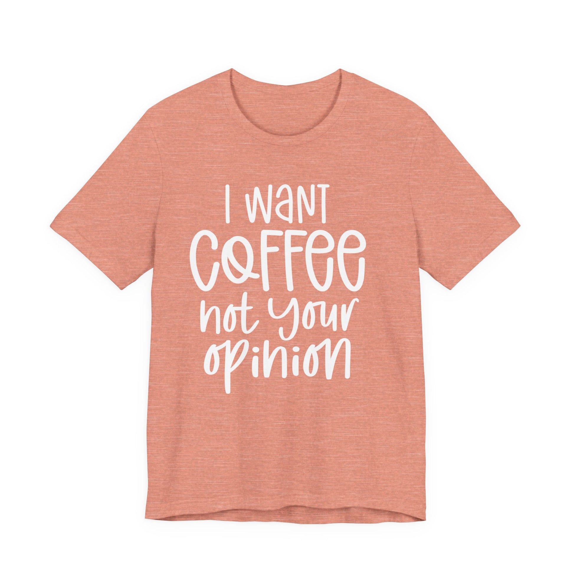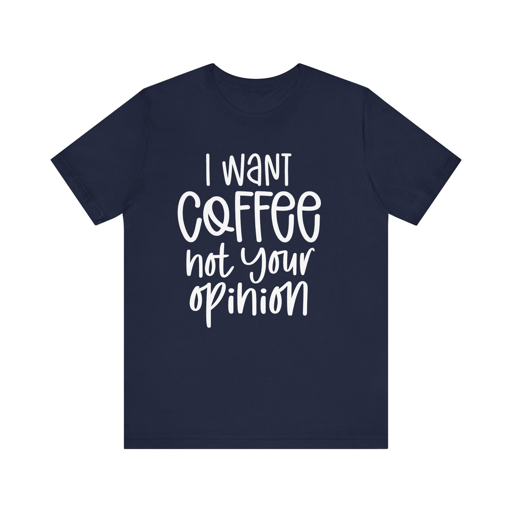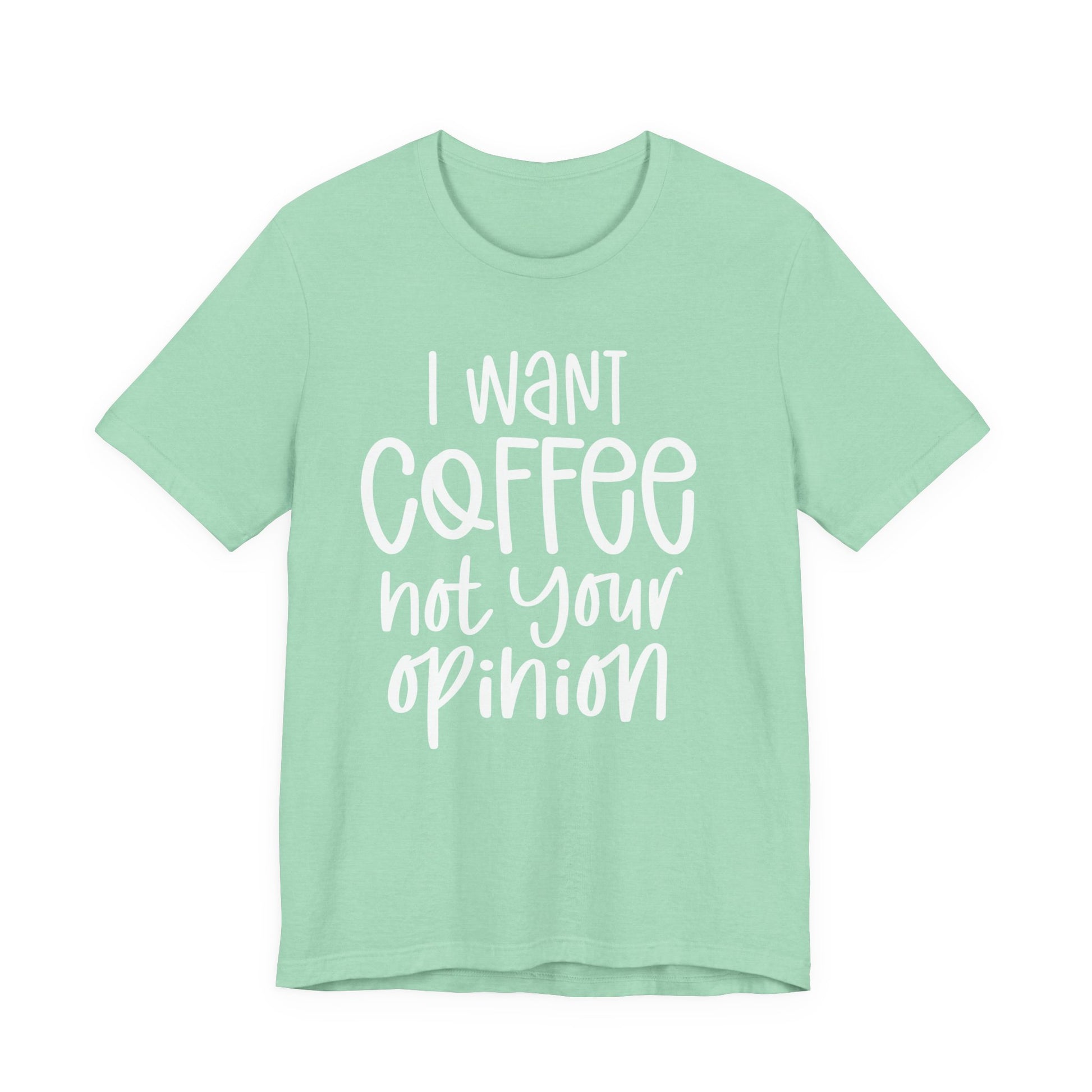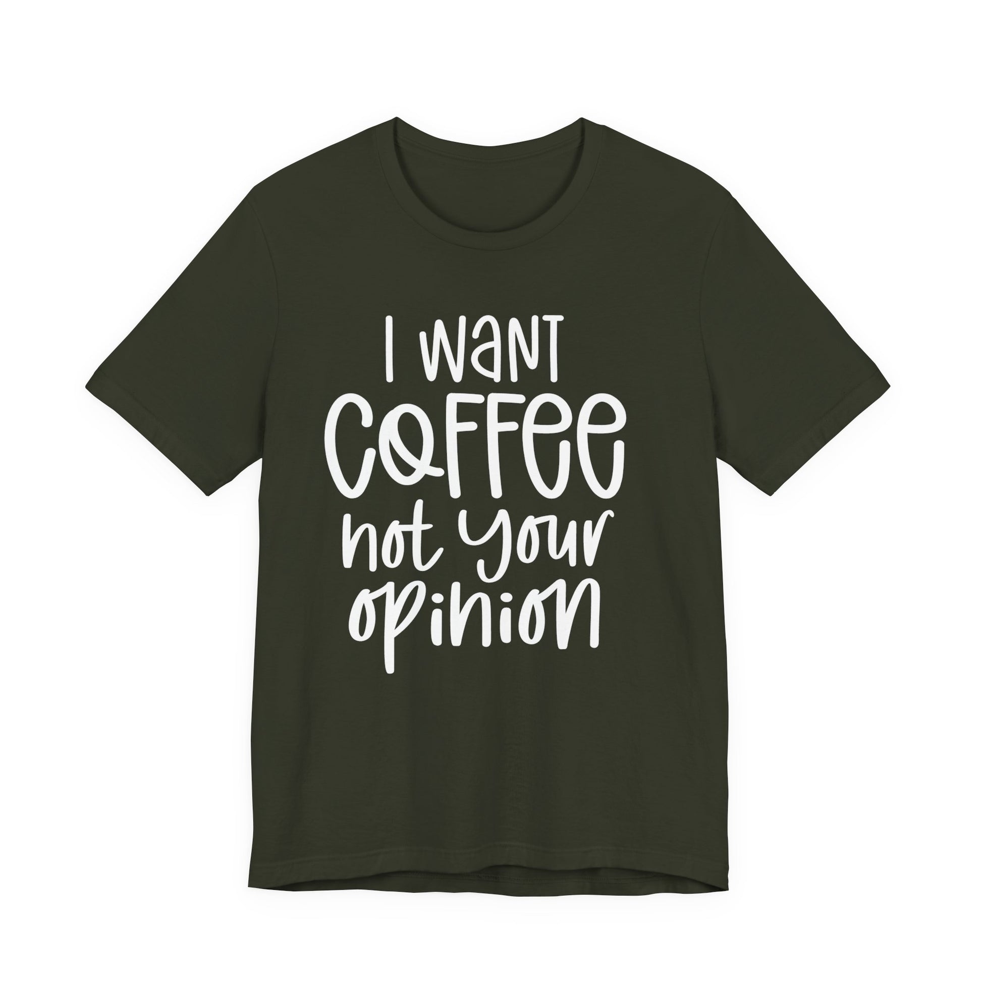 " I want coffee, not your opinion." Coffee Lover Tee: Unisex Jersey Short Sleeve