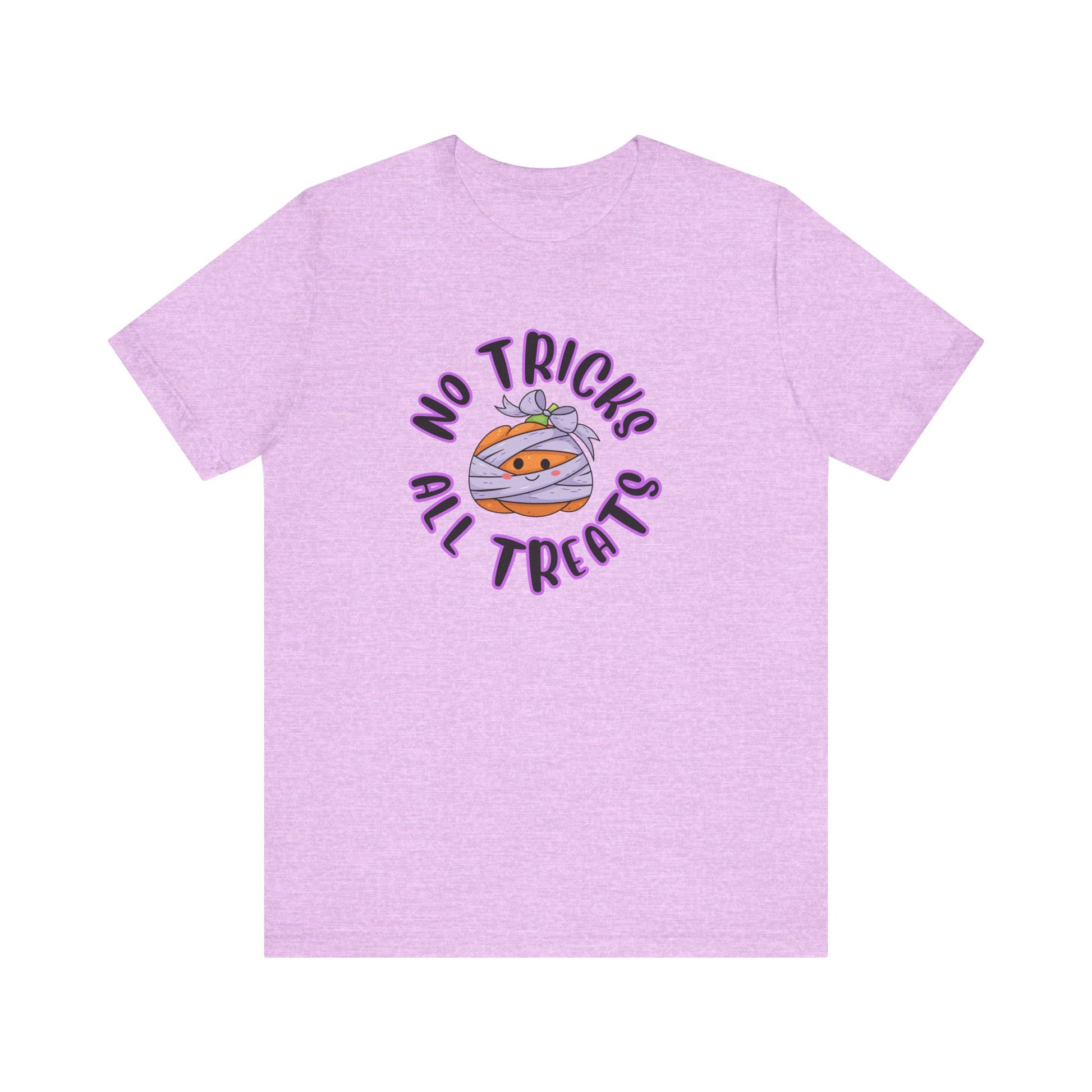 This Halloween teacher T-Shirt is perfect for those who love the spooky season. With a design that reads 'no tricks all treats,' it exudes a fun and festive vibe. It's great for teachers looking to get into the Halloween spirit and can be worn during classroom celebrations or school events.