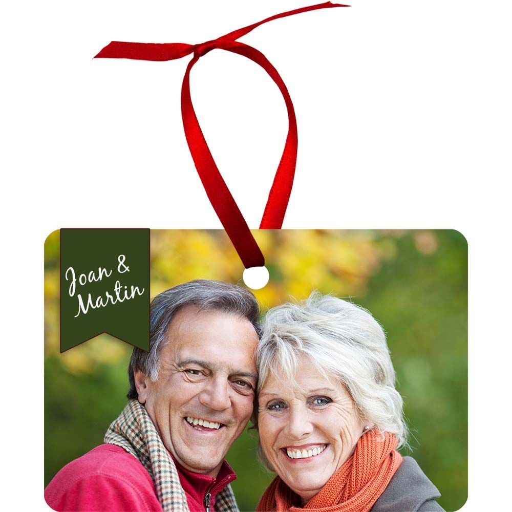 Second, this landscape rectangular ornament keepsake has a two-sided white gloss finish. Made of metal